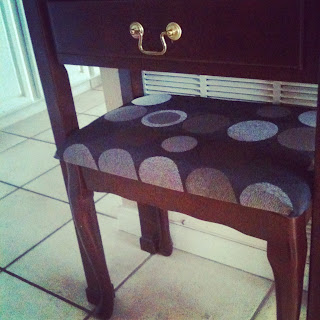 I tackled my first re-upholstery project a couple of weeks ago. It was really more like re-covering since it was super simple and no-sew. I have to apologize for the poor quality of these photos. They were taken on my phone. I really need to get my camera out from now on.