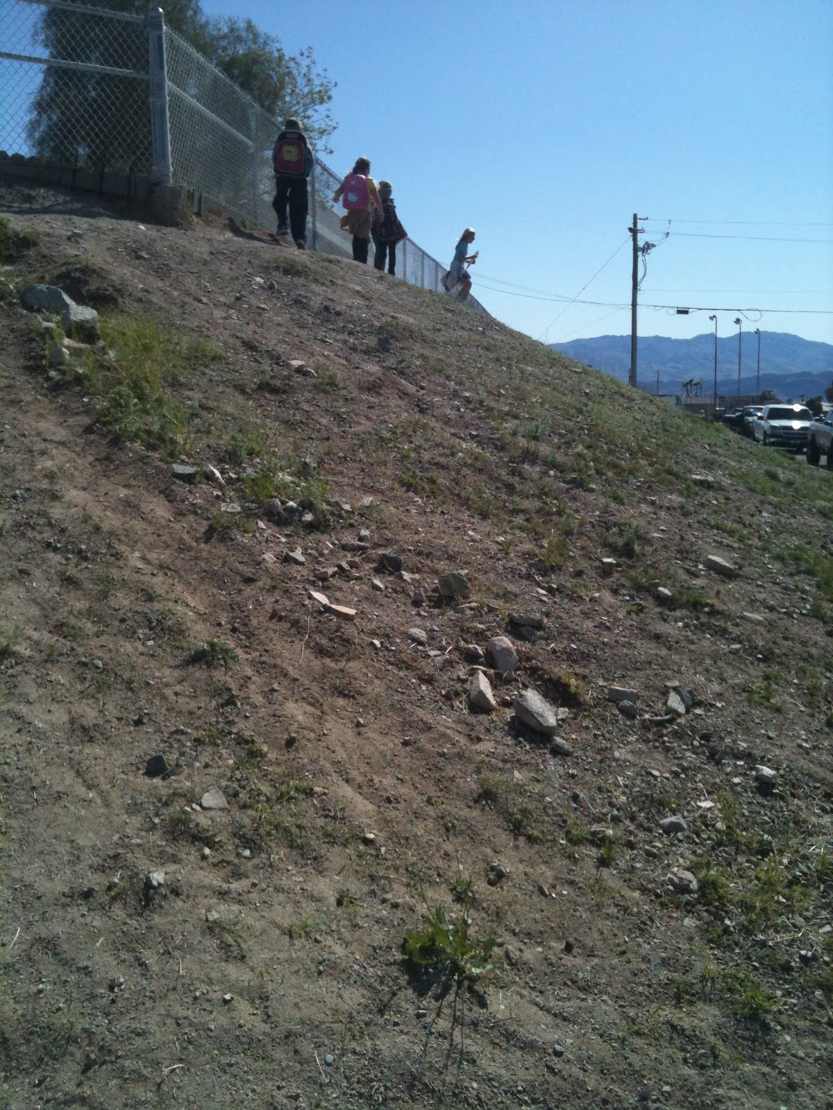 LM has Brownies I take the girls (and one boy, the leader's son) to the leader's house for their meeting. I usually have 6, this week I only had 5. To get to the car they always walk up to the top of the hill and trail along behind one another along the fence line. It has always reminded my of the Von